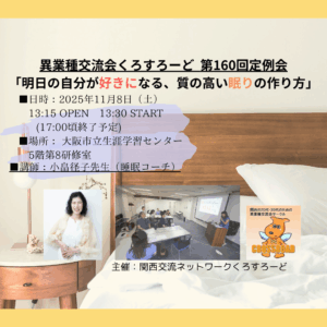 くろすろーど第160回定例会「明日の自分が好きになる、質の高い眠りの作り方」